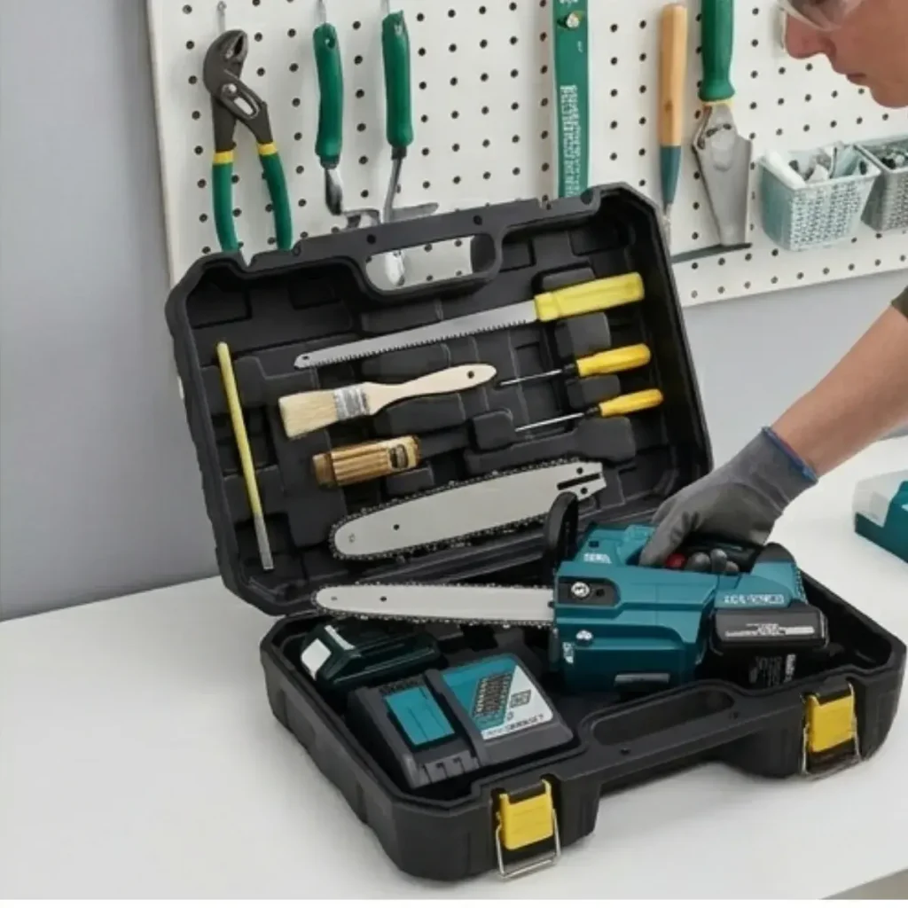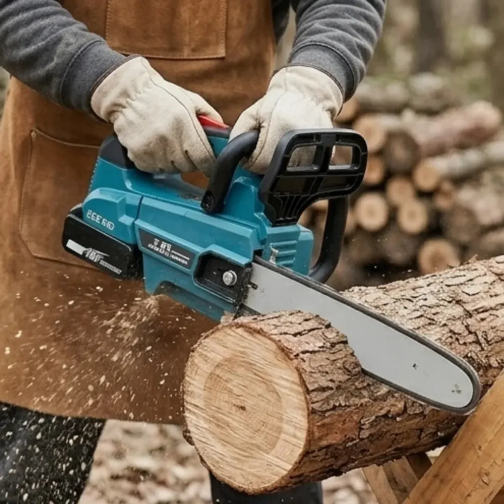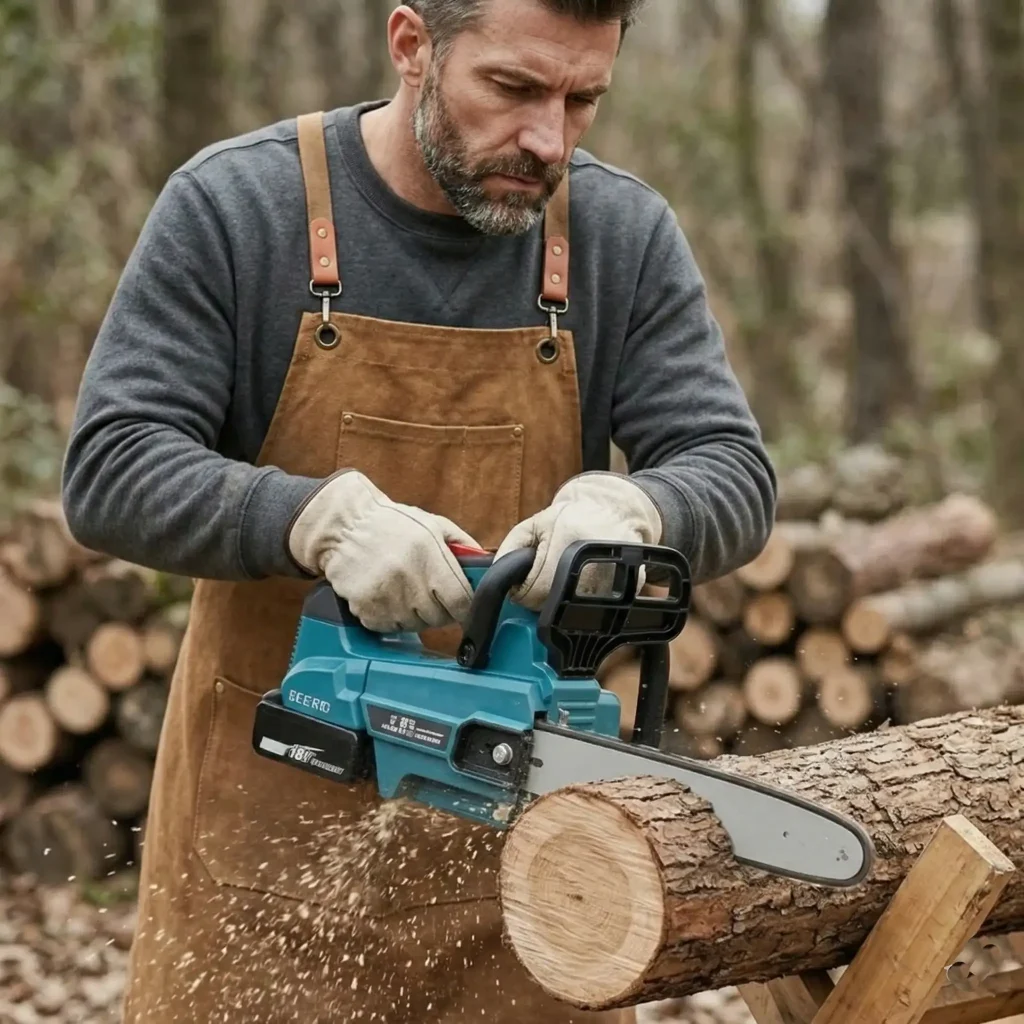 Der bürstenlose 1000-W-Motor mit 7 Geschwindigkeitsstufen schneidet Bäume bis zu 55 cm Stärke in wenigen Sekunden.